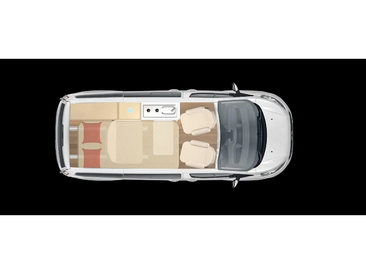 | Bettsystem | festes Doppelbett längs, umbaubare Liegefläche |
