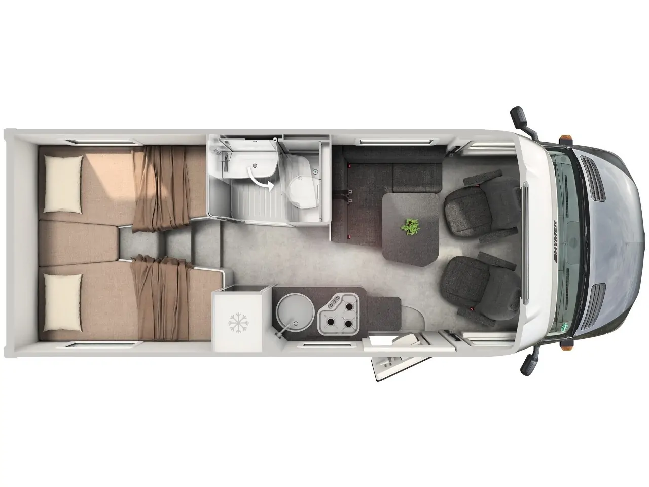 | Bettsystem | festes Doppelbett längs, umbaubare Liegefläche |